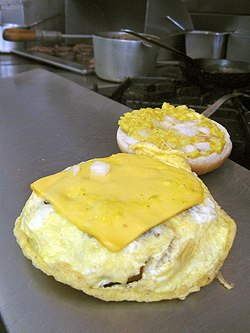 The Cheesy Western sounded good. Really good. Not only that, in sitting there watching AJ work I saw a few of them slide by to waiting patrons. Quite a few, actually. I decided to go ahead and order one, which AJ proceeded to make up for me.
