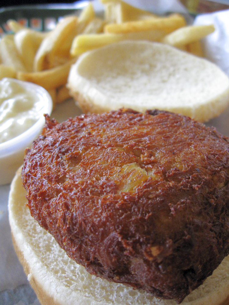 My real problem is that this sandwich, and anything else served at that particular restaurant, should solidly represent the seafood of the Chesapeake Bay. Unfortunately, it does not do so, not by a long shot. Honestly, when I bit into the sandwich it was ok, and I was instantly suspicious of the meat being a Chesapeake crab cake from Phillips, which is a wonderful product. If so, that would have been the sandwich’s only saving grace, as Phillips is the way to go in many cases for decent seafood for this purpose. But even it it was, somebody had cooked the Hell out of it and served it up very amateurishly. The result was far from representative of what even that particular seafood supplier would want to see for that product.