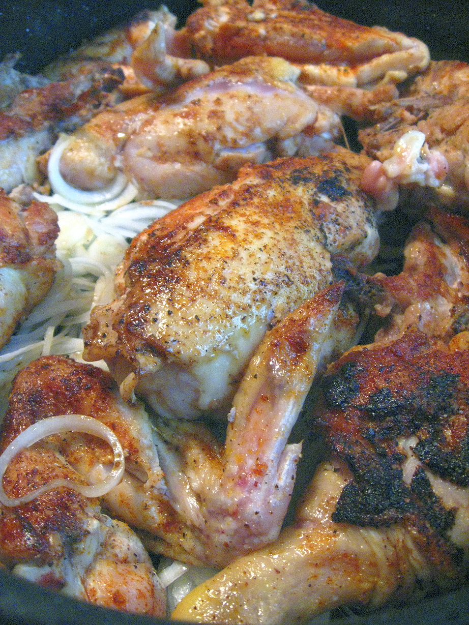 2 chickens (3 – 4 pounds), each cut into 8 pieces, rinsed and patted dry