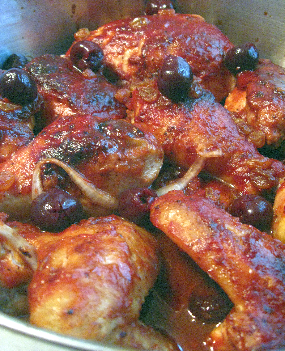My lucky recipe was Aunt Hilda’s specialty, her decades-old signature dish, eagerly anticipated by all (although she just called it “holiday chicken” – I always was a sucker for alliteration.) Sweet yet zippy, pretty plump cherries peeking through the piquant sauce, Aunt Hilda’s holiday chicken ushered in countless New Years, heralded scores of birthdays, and graced many a holiday table.