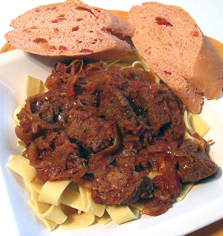 Beef Gulyas, from the book Cooking Jewish, served with a couple