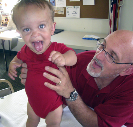 And of course, as with any of our family functions anymore, Knoah Sweat, the tiny subject of the blog What Is Normal? and already a member of Little People of America, showed up with the rest of his family. Here’s Knoah with his dad Will: