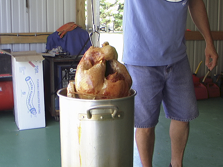 Tried my hand at frying a turkey last year–complete disaster, the turkey was way too cold (still partially frozen). Ended up going to KFC.