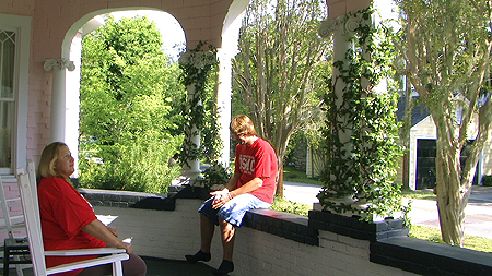 Mary and Caleb enjoy the North Street Inn’s front porch after Saturday’s breakfast.