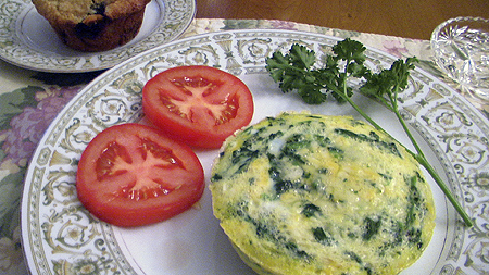 The Spinach Frittatas we had that first morning were simply beautiful, light and fluffy, cooked perfectly with no brown sections whatsoever, and served with fresh tomato slices Jo Ann cut from tomatoes that made the kitchen smell like a garden.