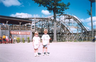 Michigan Adventure Amusement Park, Muskegon, August 18, 1998Briahna and Adam each rode their first roller coaster this past summer, Zach's Zoomer, and Briahna just loved it. She actually rode it twice that day. Adam? He said "I didn't mind when it went up, but I didn't like it when it went down"!