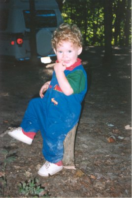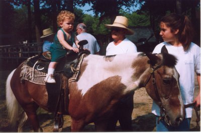 Riding 'Blossom', August 7, 1998, Mercer/Grove City KOA, PARyan's second year went rather well. Even riding 'Blossom' as seen in the picture above, he had lots of fun ... for a while anyway! He's certainly a fun-loving little guy, and still loves chewing on Mommy's hair. Full of character, always surprising us with new looks and mannerisms, loving in a very deep way. He's just a gem.